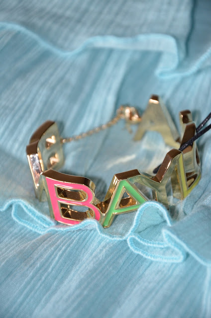 Lo siento, pero es que por Bimba&Lola tengo auténtica debilidad, en general, y por su bisutería, en particular. Así que me he contenido todo lo que he podido, pero no he sido capaz de resistirme a este precioso brazalete, que creo que voy a poder lucir con todo (si este tiempo "raro,raro lo permite). Aquí lo he combinado con un vestidito monísimo de Zara del verano pasado, en color verde menta, que estaba en el armario diciéndome "¡Vísteme!", aunque en esta ocasión no ha podido ser, por razones obvias ;D ...